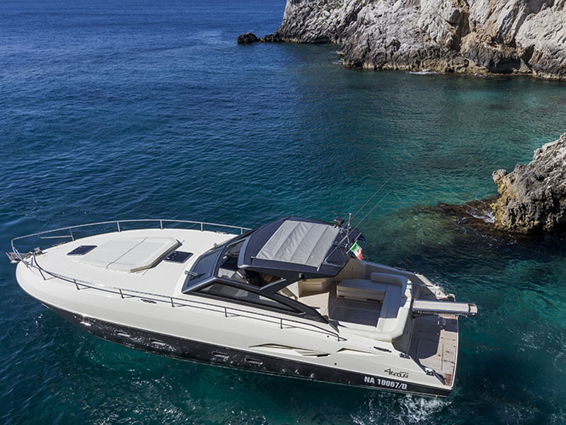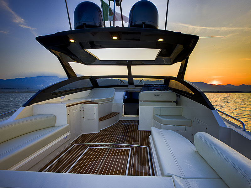 Gli spazi di questo FIART 4TFour Genius sono pensati per chi ama vivere in pieno il rapporto con il mare. L’alloggio dell’equipaggio è su questa barca destinato allo stivaggio di attrezzatura da pesca e dei giochi d’acqua. Il charter adatto per una vacanza in barca a tutto divertimento.